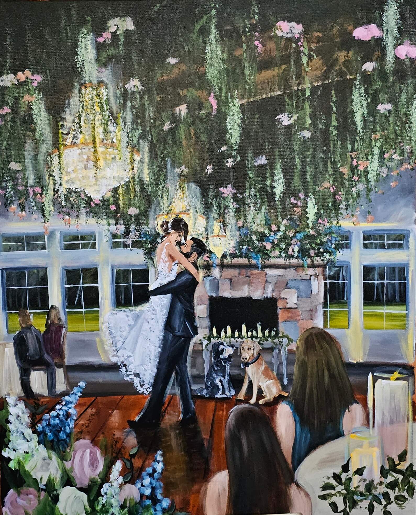 I'm Brittany. An original Jersey girl, I now have the pleasure of painting weddings all over the country (and world). I get to rock life with my pilot husband Tim and our rescue fur baby Bolt. Speaking of fur babies, I donate a portion of the proceeds from every live wedding painting to the animal rescue group that rescued our Bolt. It's a pawsome win for everyone! But, when I'm not capturing love in paint, you can find me in the kitchen cooking up a storm, burning through too many of my favorite vanilla candles, devouring PBS Masterpiece Theatre shows (sometimes for the tenth time), or traveling around with my hubby.